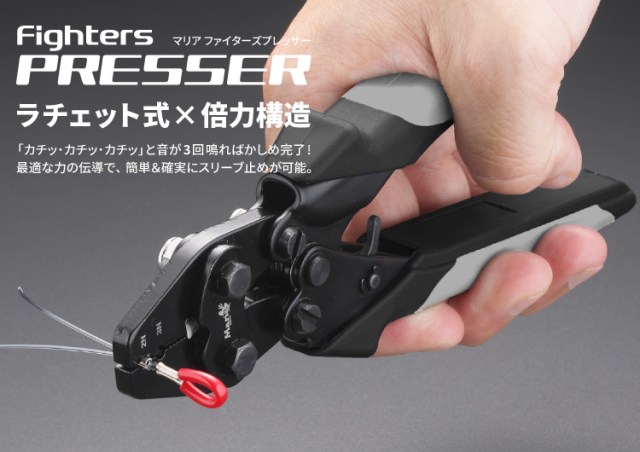 TOP 仕掛け作りアイテムスリーブ関係 ヤマリア ファイターズ プレッサー(ダルマスリーブ用) 2N/3N専用 標準小売価格(税込): ¥6,600(税込) 価格: ¥5,940 (税抜 ¥5,400、税 ¥540) 販売期間: 数量: 個 在庫 ○ レビューはありません ヤマシタのダルマスリーブに使用する専用ハンドプレッサーです。2N 3N 専用サイズとなります。(4Nは使用できませんのでご注意くださいマグロやクエ狙いの方はご注意ください) サイズが小さいです。ステンハンドプレッサーの半分位の大きさなので、〆るのにそれなりに力は要りますw ラチェット式×倍力構造 「カチッ・カチッ・カチッ」と音が3回鳴ればかしめ完了! 最適な力の伝導で、簡単&確実にスリーブ止めが可能。
